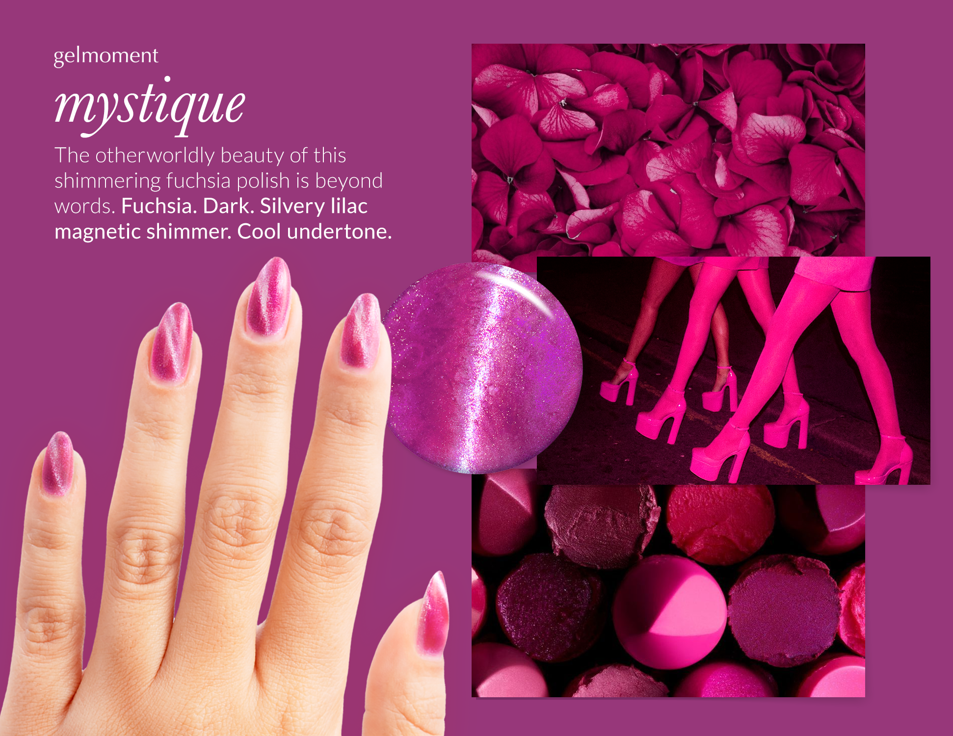Gelmoment magnetic gel polish adds shimmering depths and dazzling dimensions to your manicure with intensely eye-catching results.
